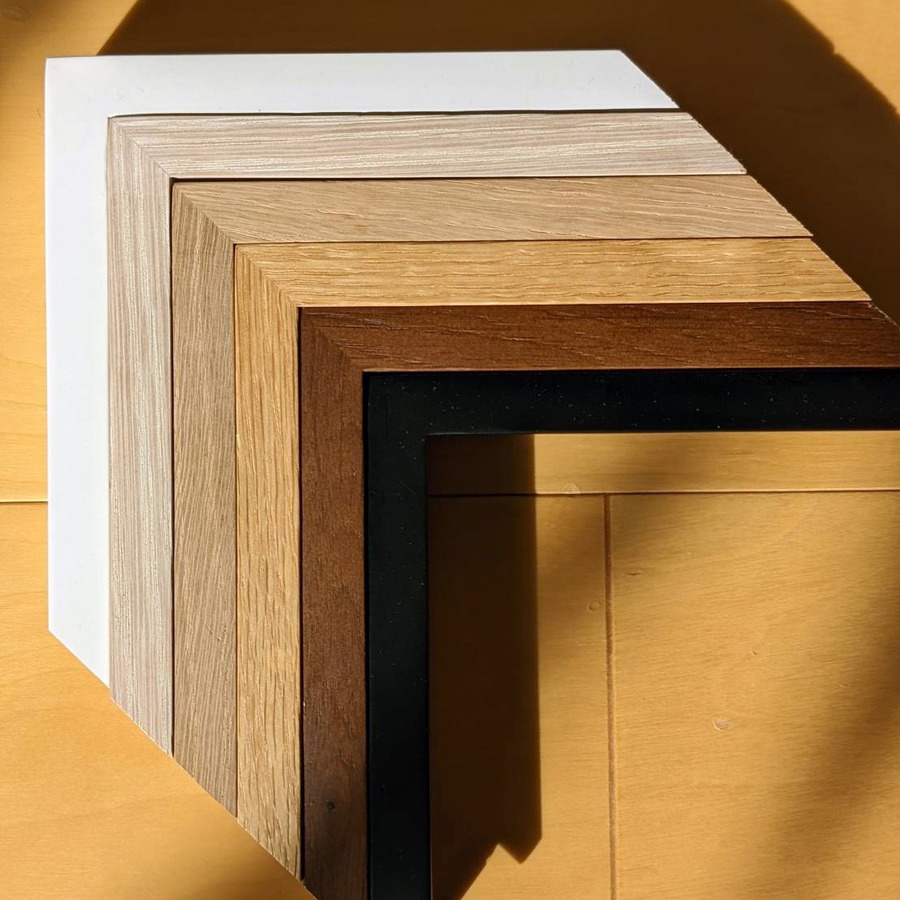 枠の材質は、カラーが白、黒はアルダー材を、木目、ホワイトウォッシュ等はオーク材を使用しています。